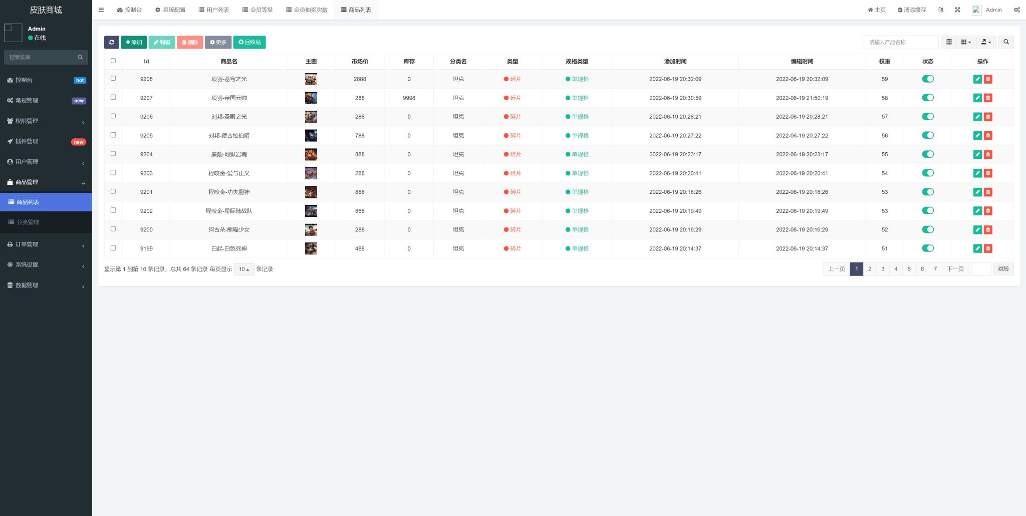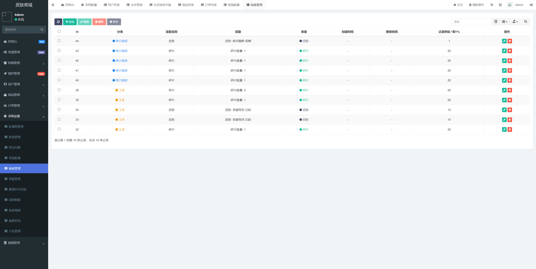 全新二开运营版王者荣耀皮肤抽奖系统,游戏皮肤盲盒商城,前端uniapp,API端thinkphp,后端FastAdmin框架