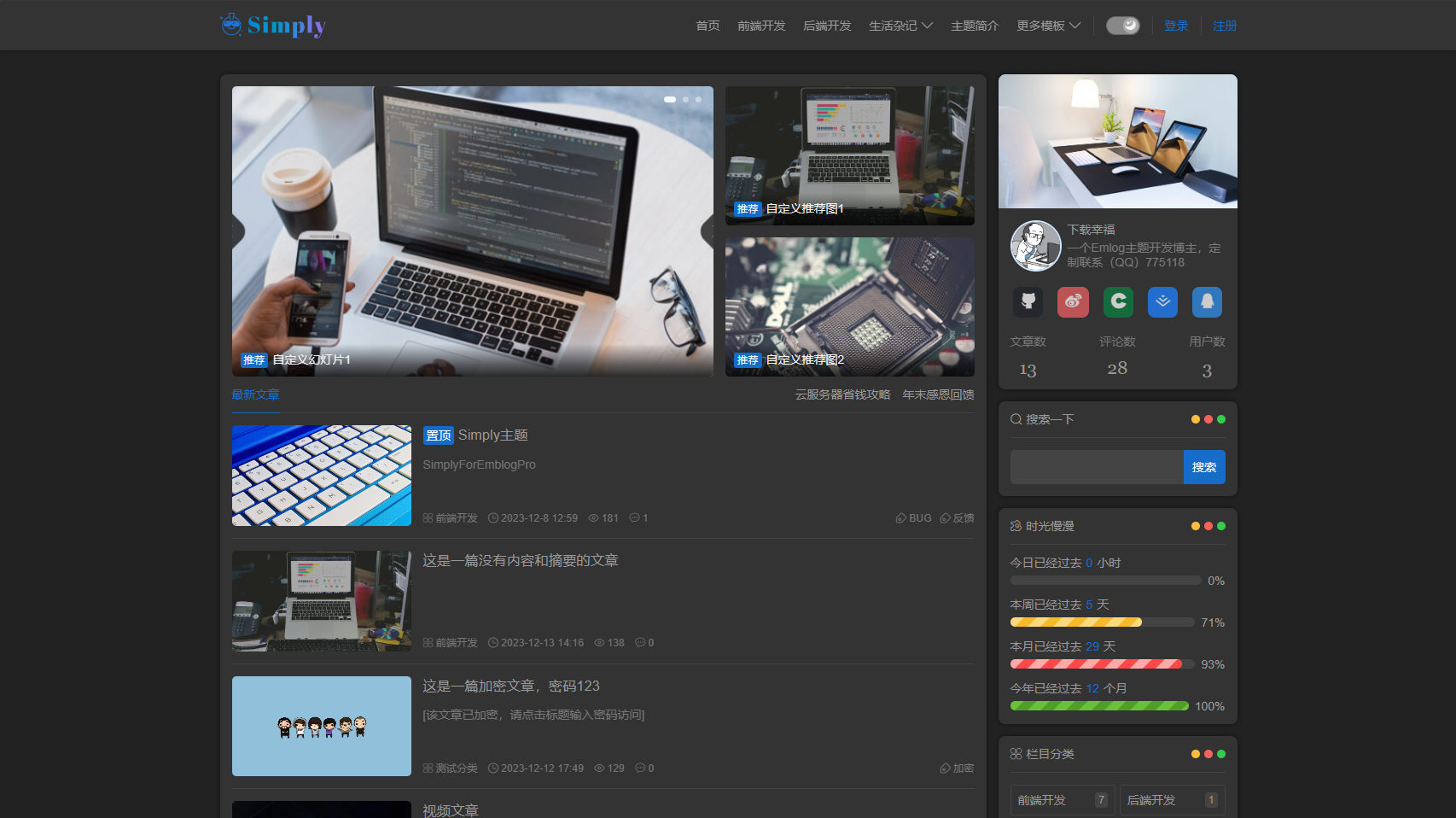 Simply: 一种简洁而精致的Emlog博客模板