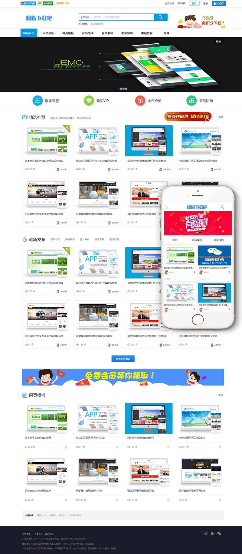 (PC+WAP)模板资源下载类网站模板(带会员中心)。